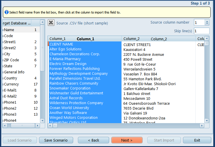Select a database field and click a Column in the file display to link it to that field. Click the 'X' button to clear all links.