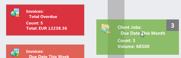 The Dashboard displays basic information about the state of Client Jobs, Invoices, and Projects in the form of a series of widgets.