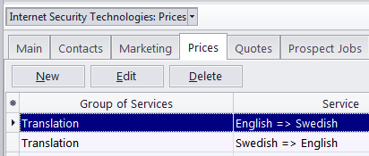 Each prospect in TO3000 can have a set of prices individual to them. These prices can be assigned on the Prices tab of the Prospect window.