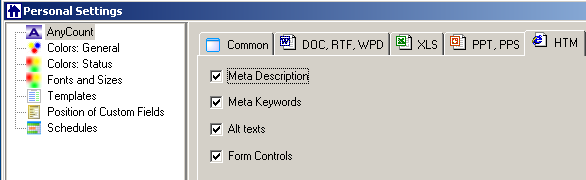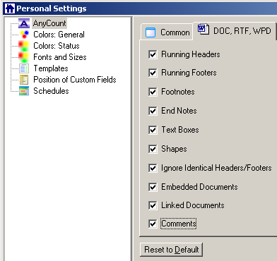 AnyCount comes with important additional options for counting .DOC, .RTF and .WPD files. Select the corresponding options to enable: